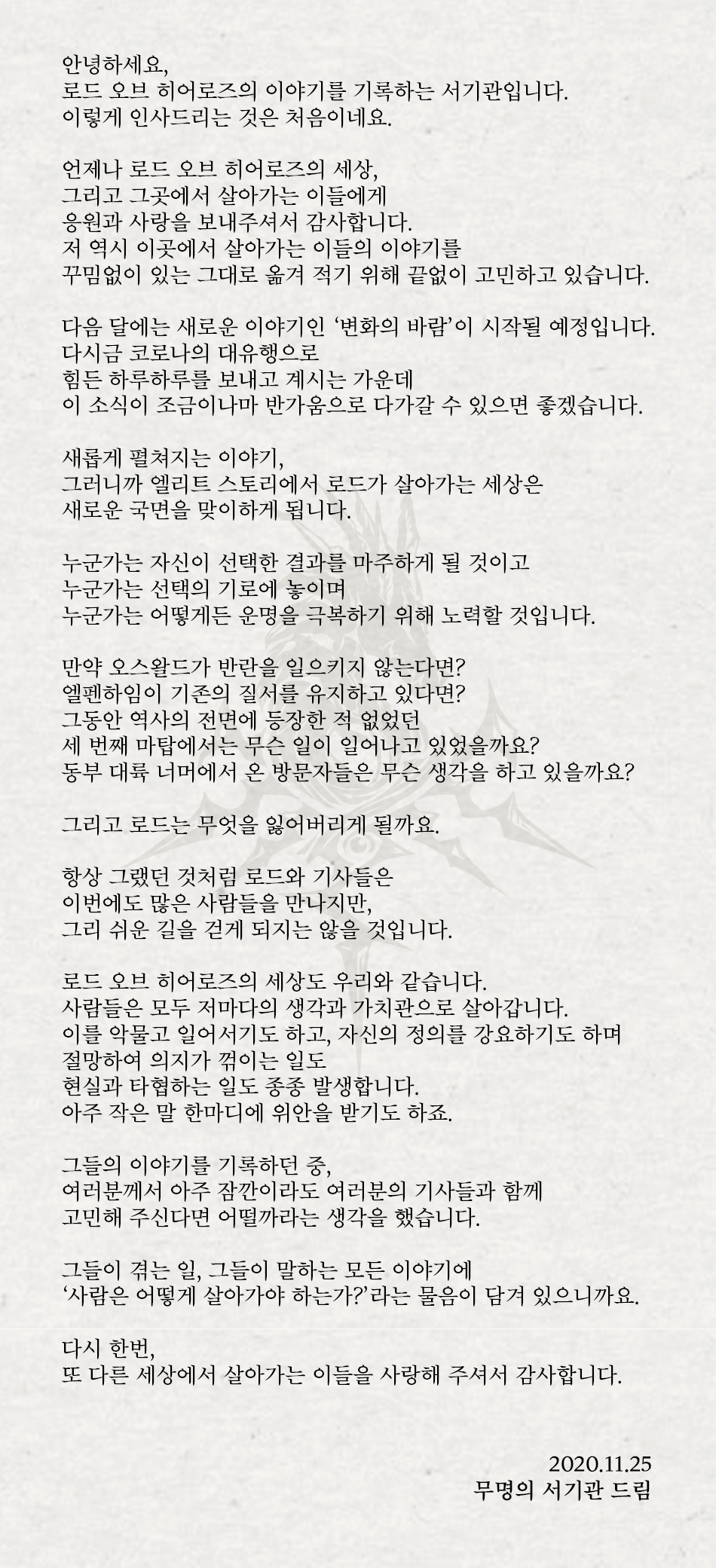새로운 이야기인 '변화의 바람'을 곧 만날 수 있다고 합니다.
