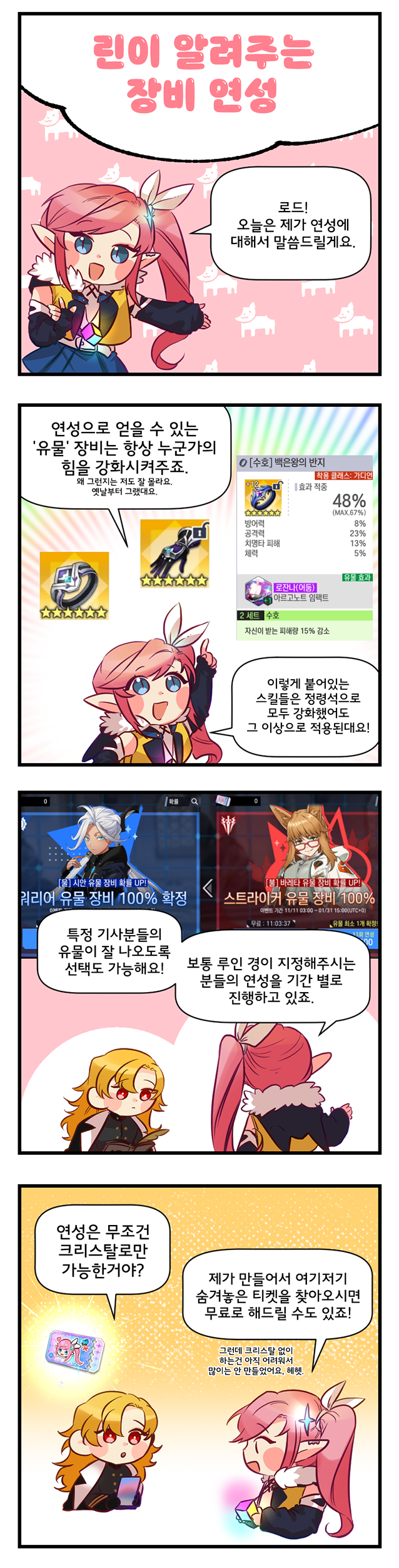 아발론서고 [아발론툰#23] 기사단의 장비는 제게 맡기세요! GM 엘펜하임 Read more posts by this author. GM 엘펜하임 2021년 1월 7일 목요일 아발론의 장비 연금술 장인, 린!기사단의 전투력은 린이 책임지고 있다구요.린이 연성해준 좋은 장비와 칸나의 강화가 만나면더없이 든든한 장비 세트 완성! 매일마다 린이 주는 무료 연성의 기회도 잊지마세요~[ 아발론툰 지난화 보기! ]