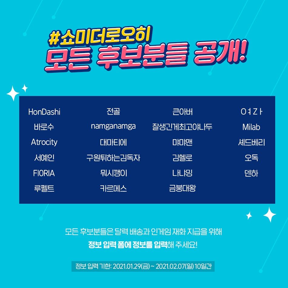 ◆ 정보 입력 기한 : 1월 29일(금) ~ 2월 7일(일)