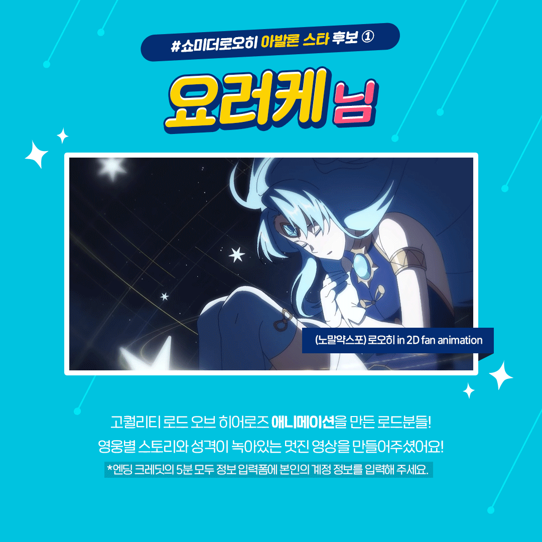 ※ 아발론 스타 후보와, 마지막 장의 개발팀 Pick, 영웅들의 Pick 후보자분들 모두 정보를 입력해 주세요.
