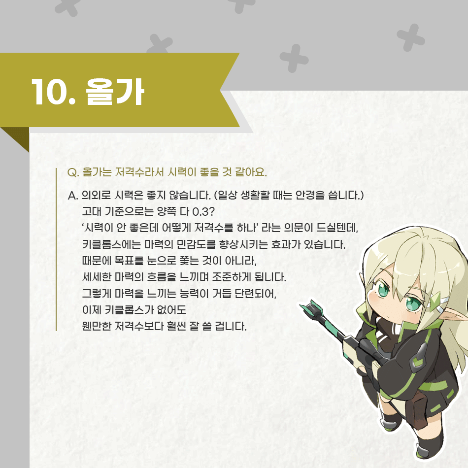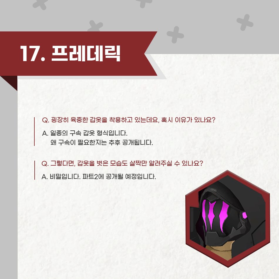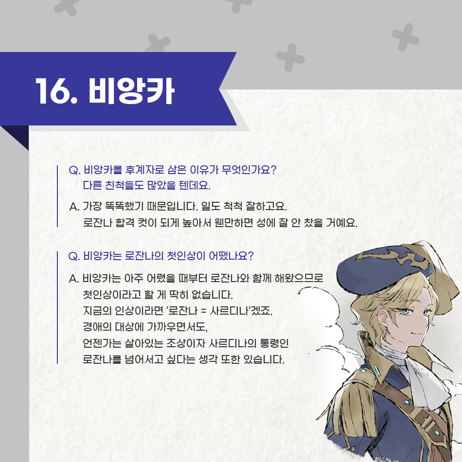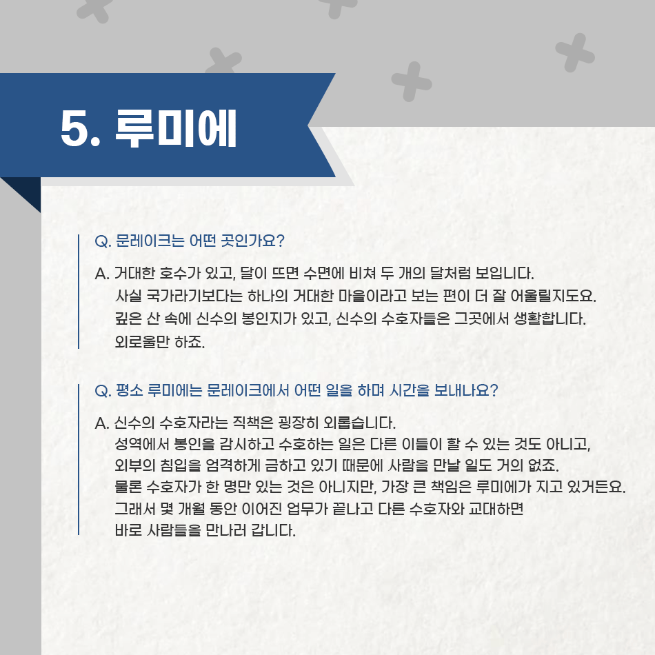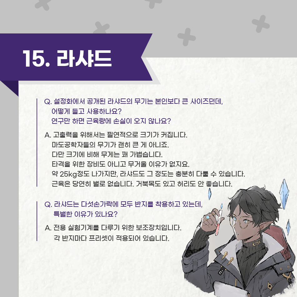 <TMI 토크> 2탄은 시나리오 후반에 등장하는 캐릭터, 그리고 엘리트 스토리만 등장하는 캐릭터들의 이야기가 나옵니다. 노말/하드 스토리의 스포일러, 엘리트 등장 캐릭터들이 다수 있을 수 있으니 이 점 유의해서 감상 부탁드립니다. 덧붙여, 아발론 기자단의 콘텐츠는 자유롭게 공유하셔도 되지만, 이번 콘텐츠의 경우 스토리를 확인하지 못한 로드분들이 계실 수 있으니, 특정 카드 뉴스의 내용에 대해서는 공유에 주의해주시면 감사드리겠습니다.