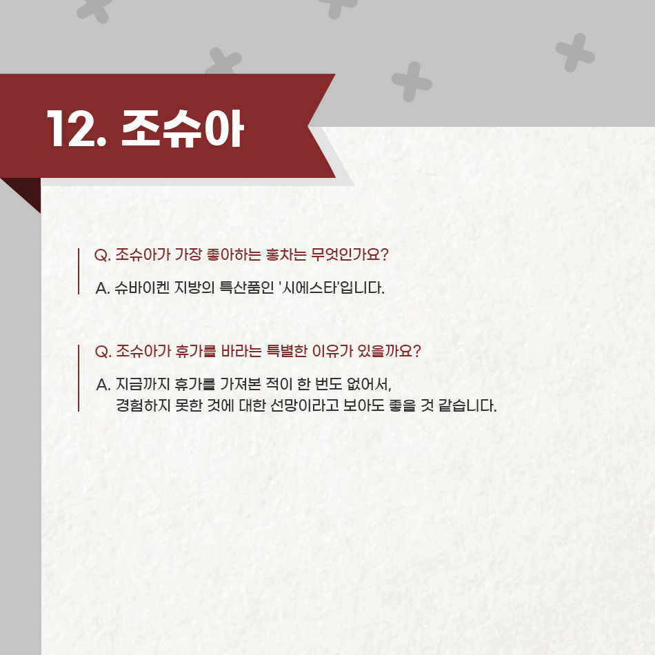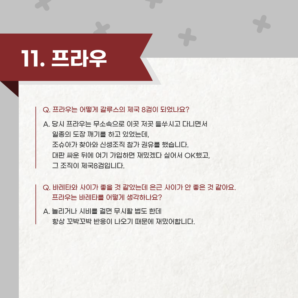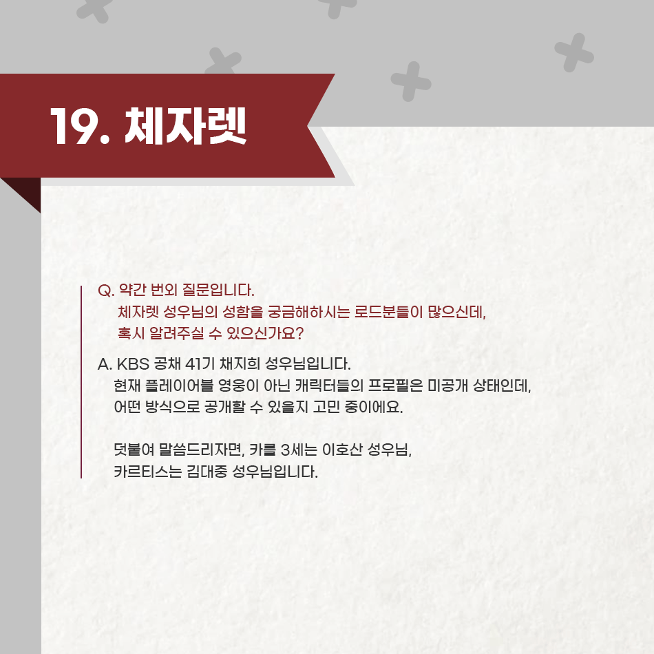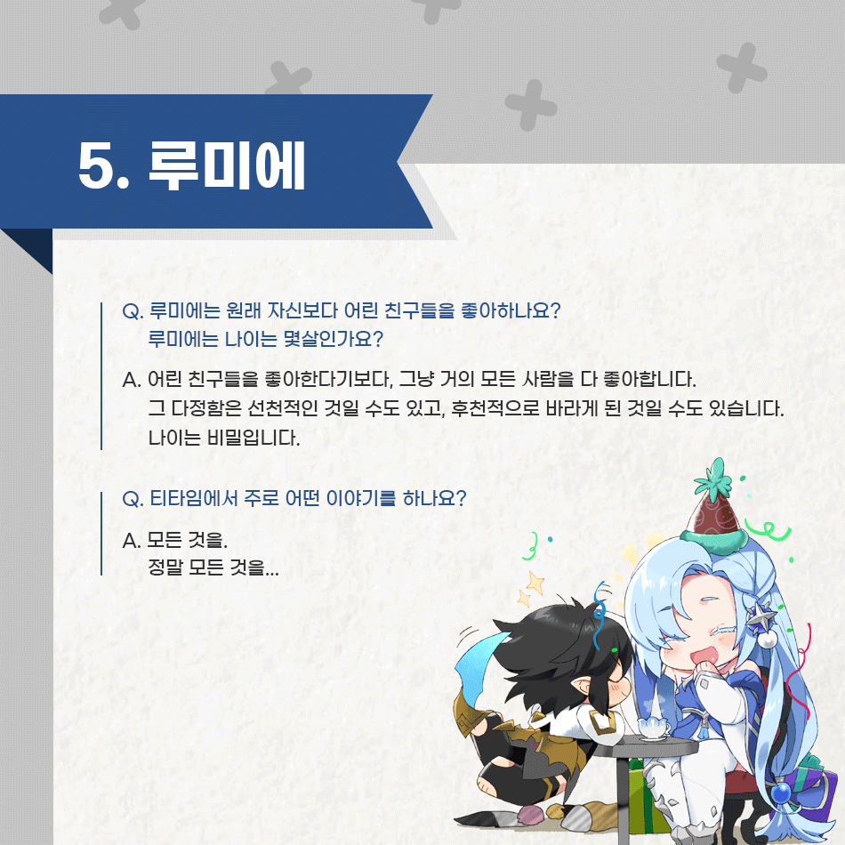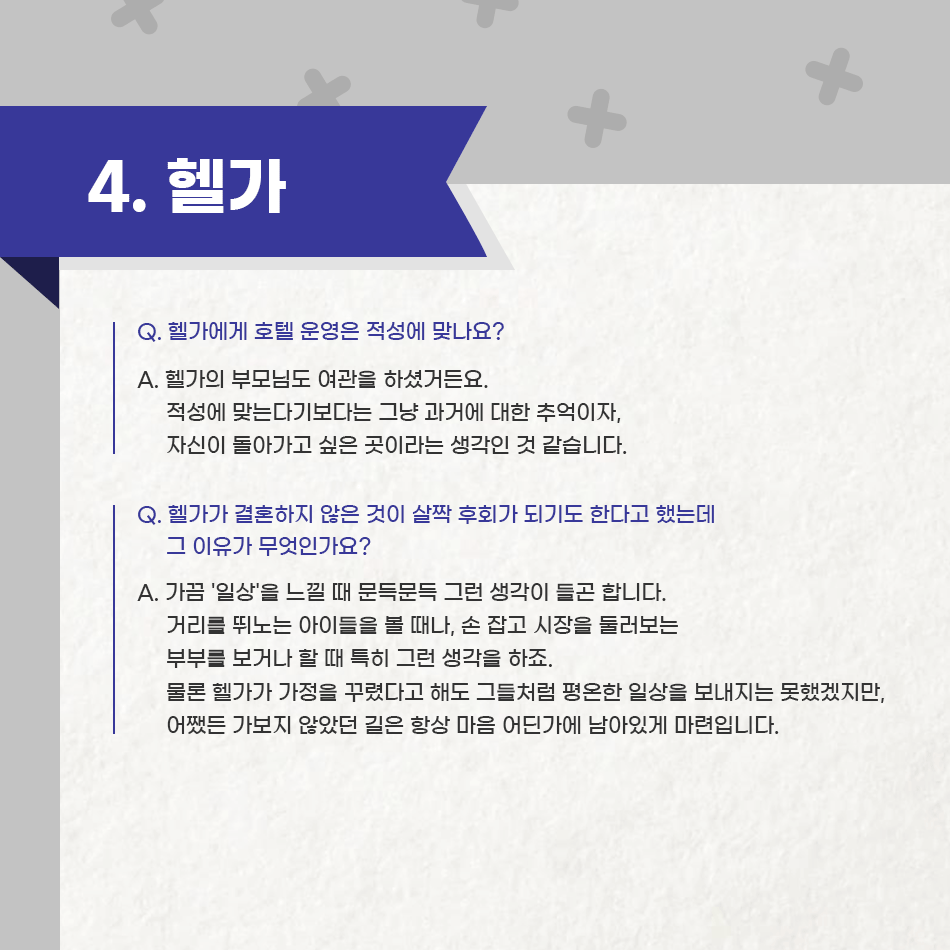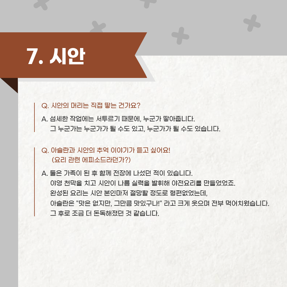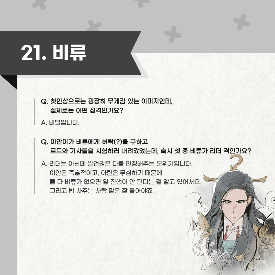 아쉬워하신 만큼 더욱 알찬 질문들로 돌아왔습니다. 분량 조절은 약간 실패했지만,‘비밀입니다.’라는 답변을 피하기 위해 열심히 고민했답니다. 1탄처럼 즐겁게 감상해주시면 좋겠습니다.