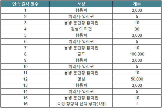 - 이벤트 기간 동안 ‘16일 연속’ 접속해 주시면 선물을 드립니다!