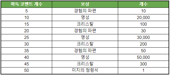- 아카이브에서 획득한 코멘트의 개수에 따라 보상을 드립니다!