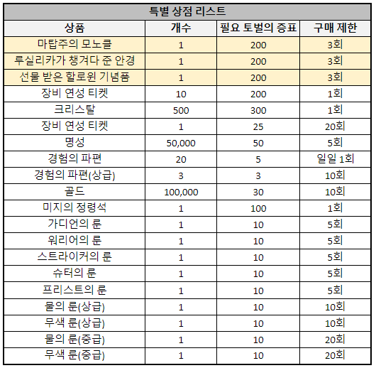 - ‘[그론달] 토벌의 증표’을 사용하여 ‘특별 상점’에서 다양한 아이템으로 교환할 수 있습니다.