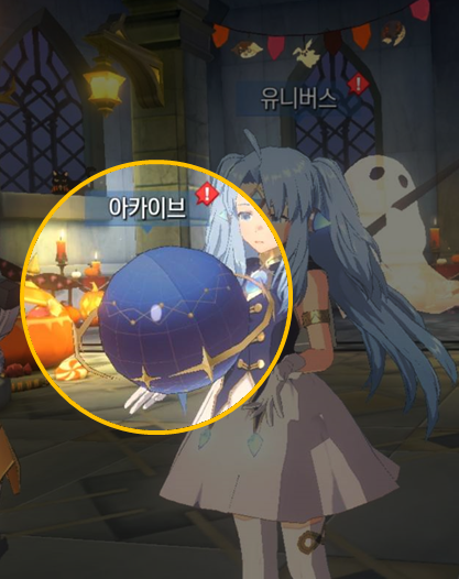 - 아카이브는 아발론 왕국 로비 내에서 뮤가 들고 있는 플라네타리움을 눌러 입장할 수 있습니다.