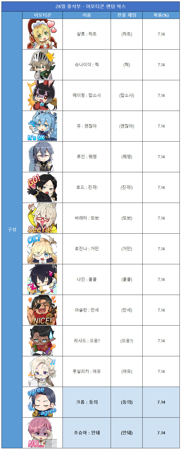 ■ 28일 출석부 보상 ‘크롬’, ‘조슈아’ 이모티콘 추가