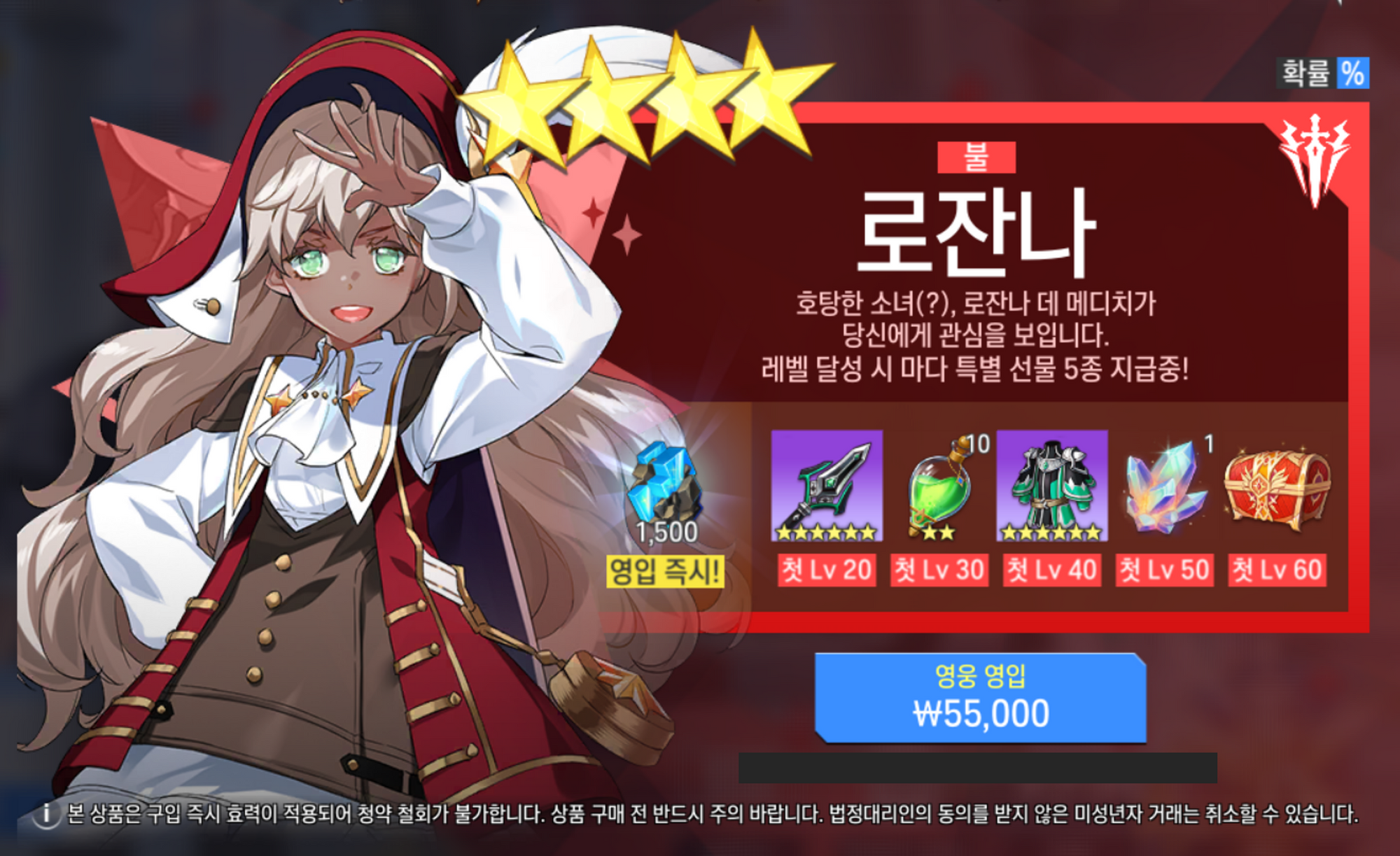 1) 유료 캐릭터 패키지: [불] 로잔나 (스트라이커)