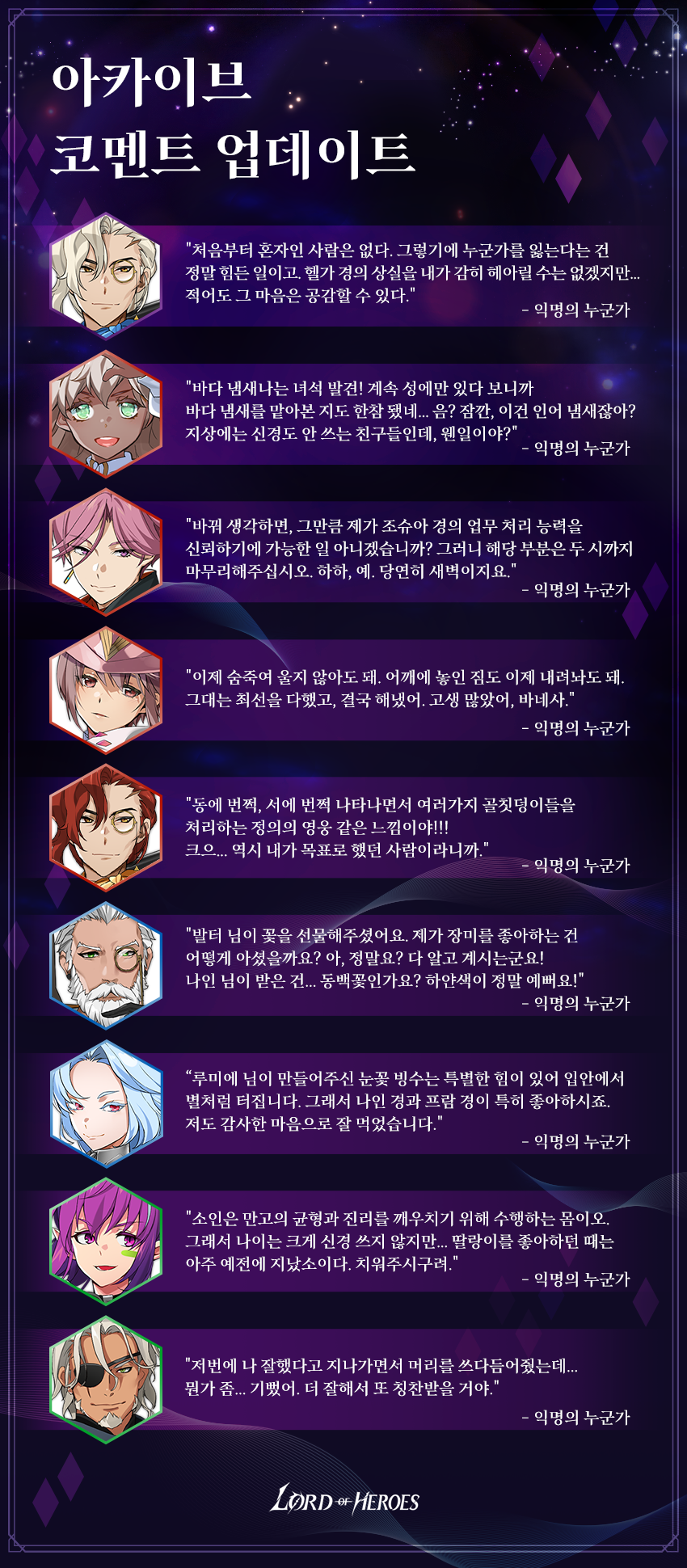 * 영웅 코멘트는 [아카이브 > 영웅] 에서 확인하실 수 있습니다.