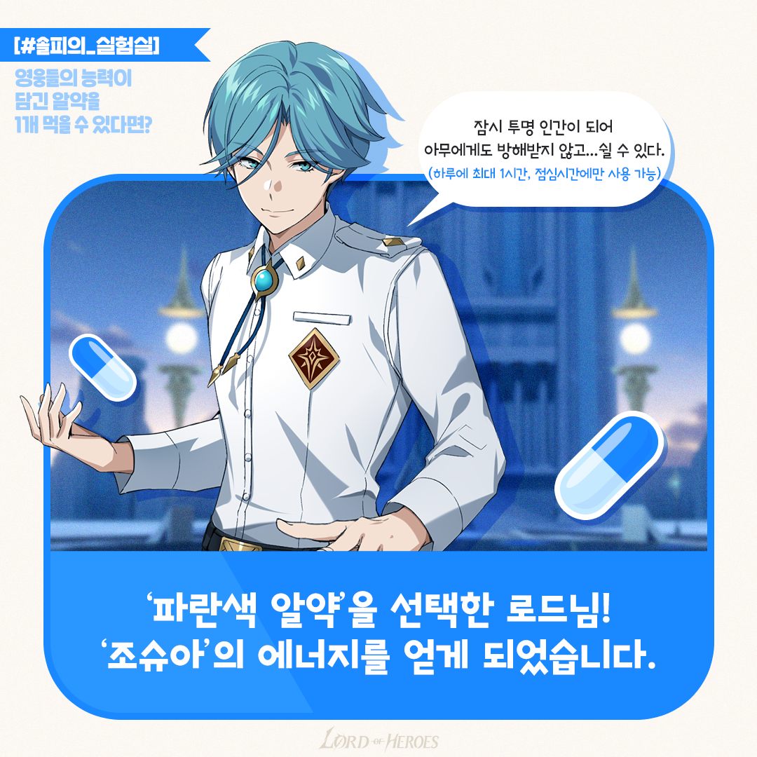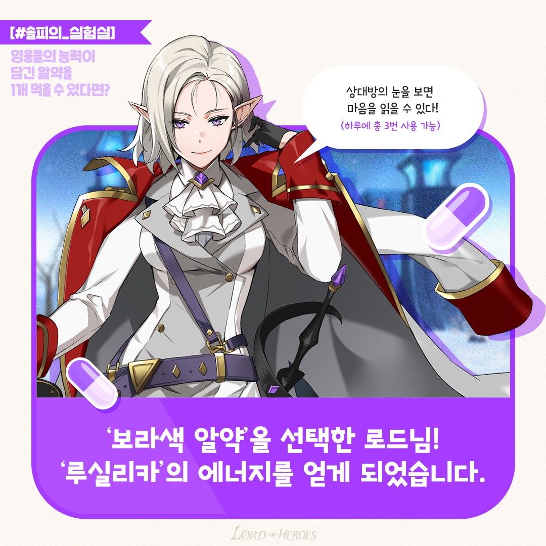 아발론서고 [#솔피의_실험실] 로드의 선택 결과는?! GM 문레이크 Read more posts by this author. GM 문레이크 2022년 4월 14일 목요일 로드는 어떤 알약을 선택했나요?로드가 선택한 알약은 누구의 능력인지 지금 확인해 보세요!