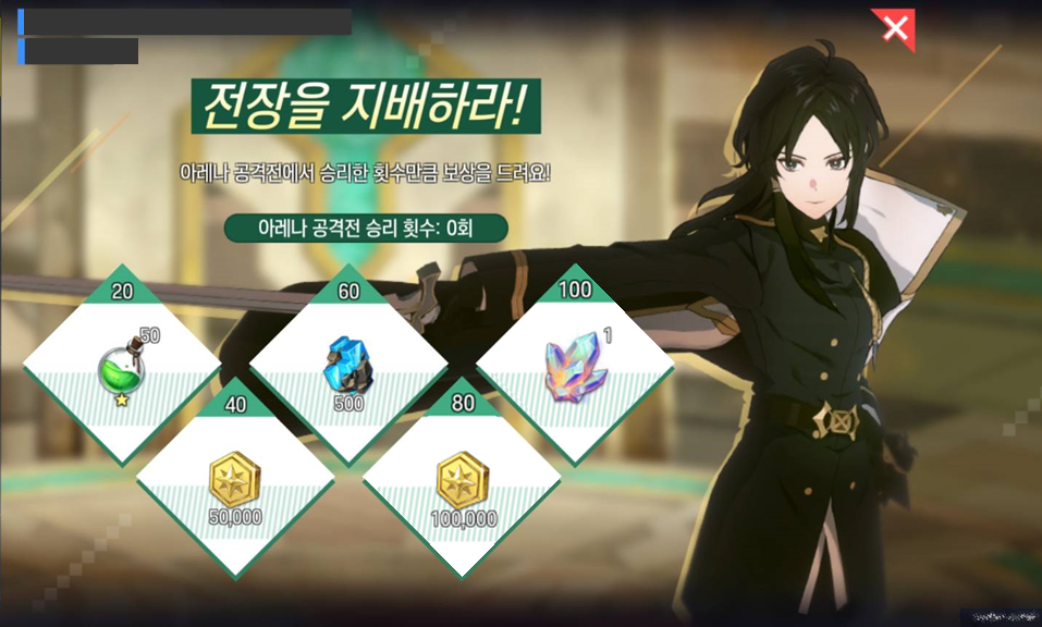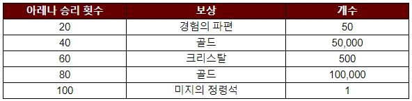 - 이벤트 기간동안 아레나에서 승리한 횟수만큼 보상을 드립니다!