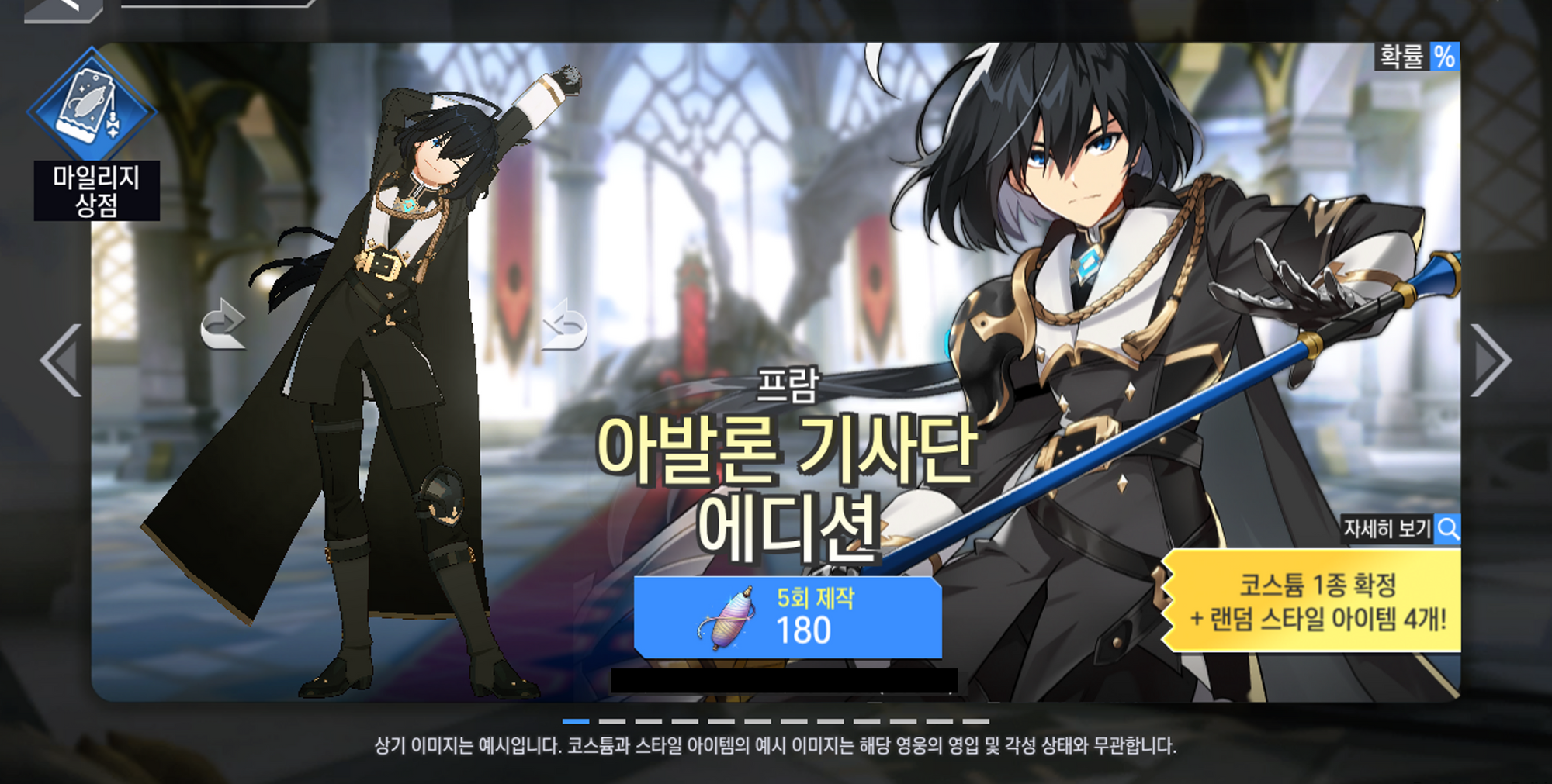 ※ 아발론 기사단 에디션은 [의상실]에서 실타래 180개를 소모하여 획득할 수 있습니다.