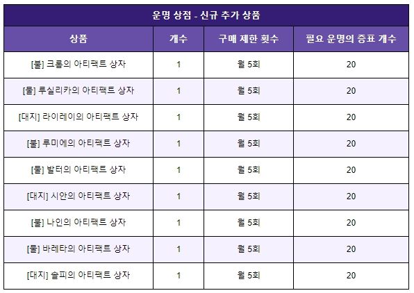 1) 운명 상점 내 신규 상품 9종이 추가됩니다.