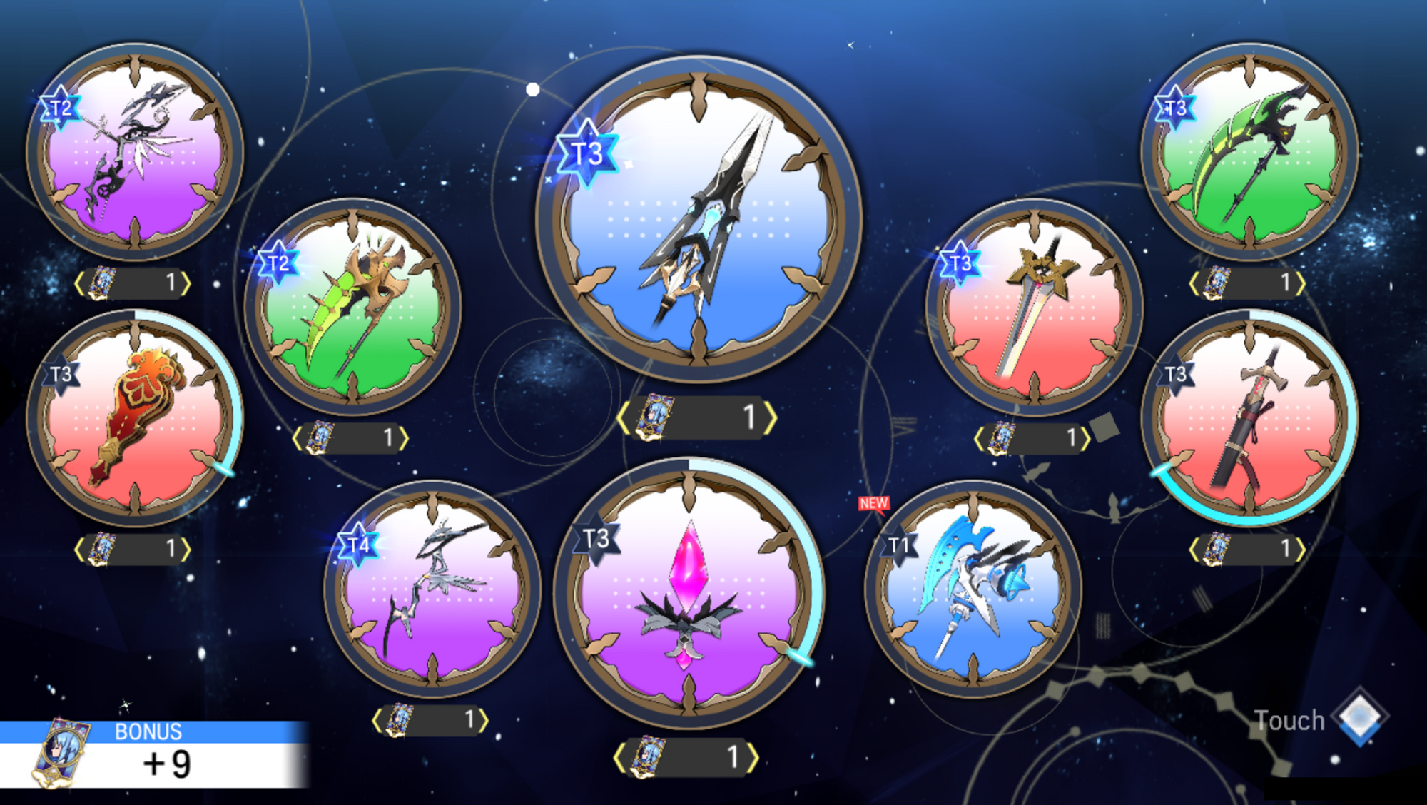 - 소환 가능 아티팩트: [불] 프람 / [물] 프람 / [빛] 프람 / [불] 요한 / [물] 요한 / [빛] 요한 / [어둠] 미하일 / [대지] 미하일 / [대지] 샬롯 / [어둠] 샬롯 / [물] 샬롯 / [대지] 슈나이더 / [어둠] 슈나이더 / [불] 슈나이더 / [물] 슈나이더 / [빛] 시프리에드 / [불] 라이레이 / [대지] 라이레이 / [불] 크롬 / [물] 크롬 / [불] 루미에 / [물] 루미에 / [불] 나인 / [물] 발터 / [대지] 발터 / [물] 루실리카 / [대지] 루실리카 / [물] 바레타 / [불] 시안 / [대지] 시안 / [대지] 솔피