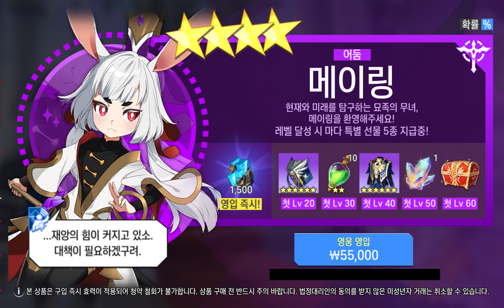 ※ 영웅 영입 패키지는 구입 즉시 효력이 적용되어 청약철회가 불가한 점 참고 부탁드립니다.