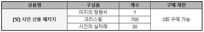- 신규 영웅 패키지 [빛] 시안 영입 후 구매할 수 있는 상품입니다.