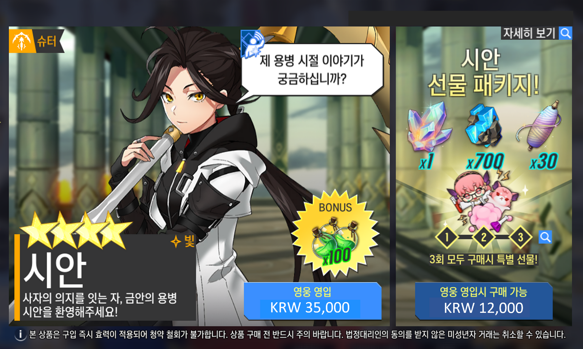 2. 유료 캐릭터 패키지: [빛] 시안 (슈터) 복각 판매