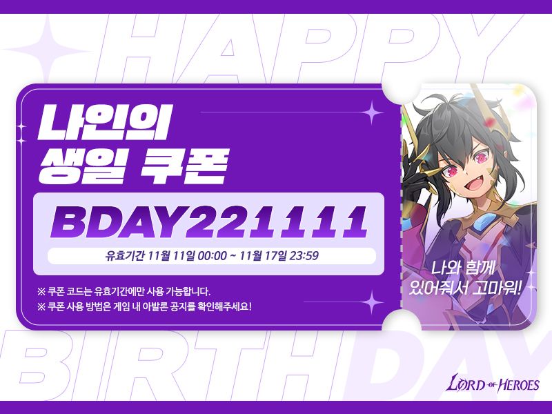 생일 쿠폰과 배경화면, 그리고 인게임에서 만나볼 수 있는