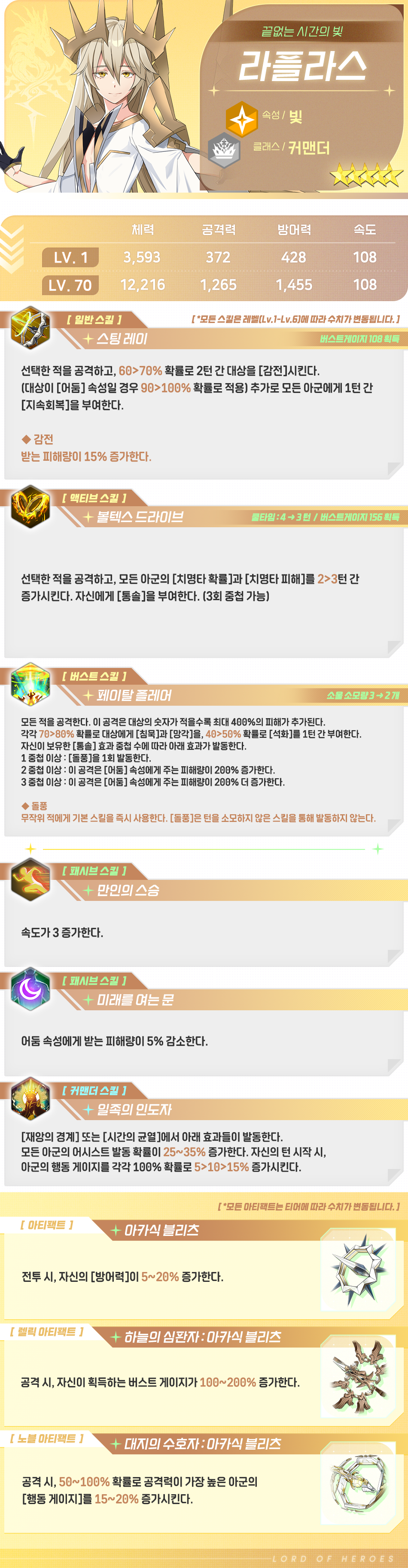 아무튼 이 유유자적한 엘더엘프는 지금의 결과에 비교적 만족하고 있는 듯합니다. 남부럽지 않은 제자들을 두었고, 그들이 장성해 다음 세대의 기둥으로서 활약해 주었으며, 예상치 못하게 찾아온 인연은 훌륭한 성장을 거듭하고 있거든요. 재앙이 언제 다시금 약동할지 모르는 일이지만, 염려와 걱정에 앞서 일을 그르치기에 라플라스는 너무 오랜 세월을 살아버렸습니다. 그러니 같은 태도를 고수하겠죠. 세상의 모든 것들을 사랑하면서, 경험과 연륜이 후배들의 등을 밀어주길 바라면서요.