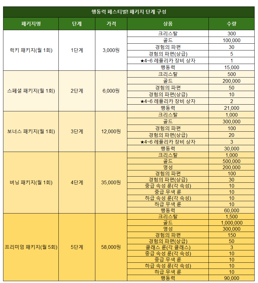 ※ 행동력 페스티벌 패키지는 각 단계를 순차적으로 구매해야 다음 단계의 패키지를 구매할 수 있습니다.