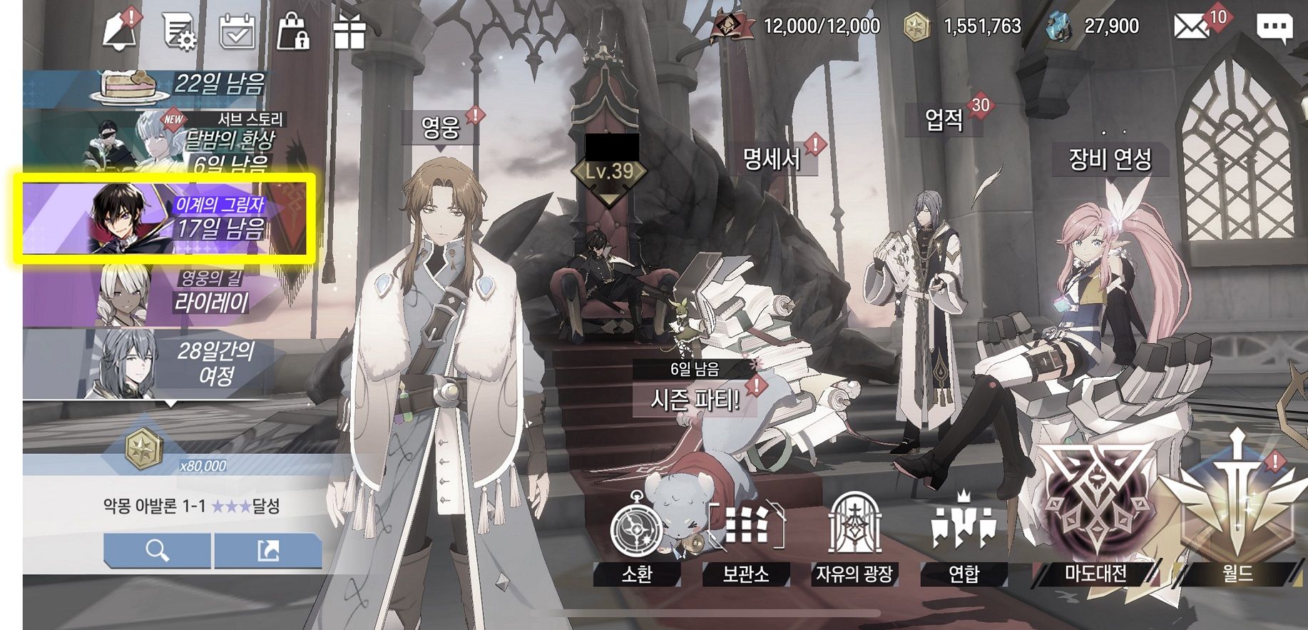 ※ 연합에 가입하지 않은 경우 시나리오 및 전당 스테이지를 클리어하여도 이계의 그림자가 발견되지 않습니다.