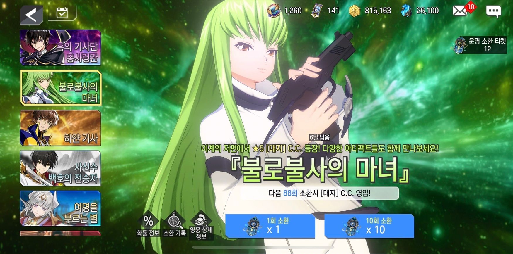 - [대지] C.C.는 『불로불사의 마녀』소환을 통해 영입이 가능합니다.