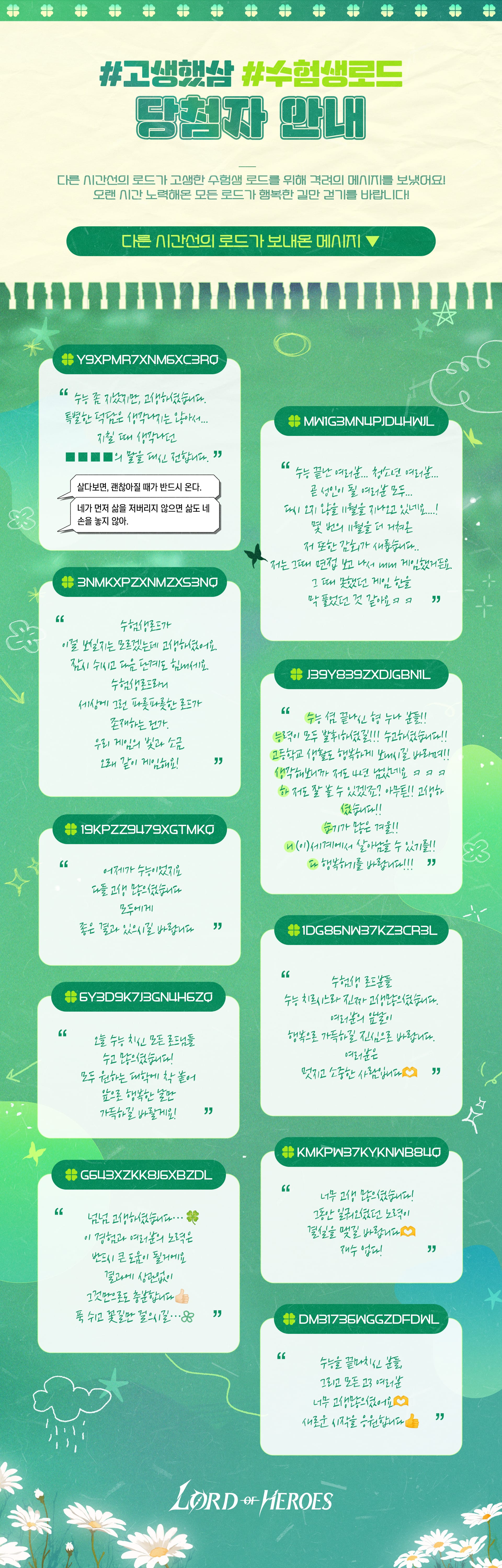 이벤트 [결과 발표] #고생했삼 #수험생로드 격려의 메시지 이벤트 GM 플로렌스 Read more posts by this author. GM 플로렌스 2023년 11월 28일 화요일