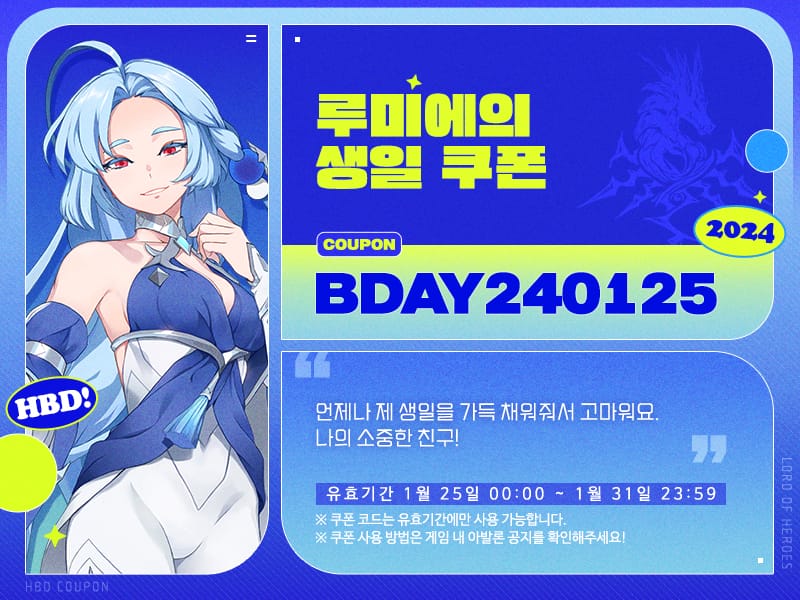 - 기간 : 1월 25일(목) 00:00 ~ 1월 31일(수) 23:59 (UTC+9)