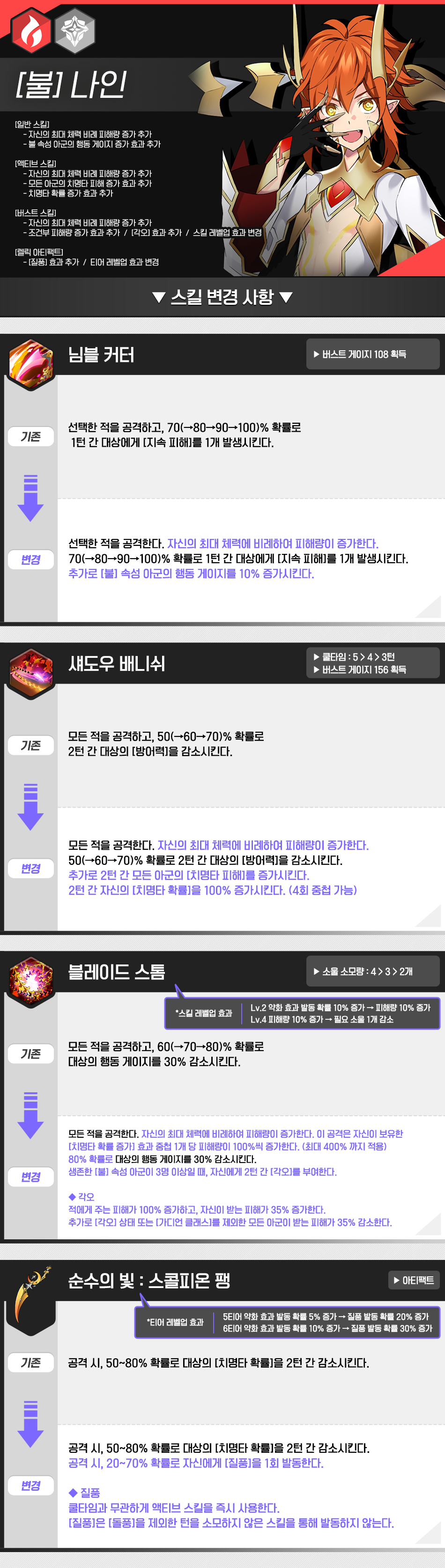 1. [불] 나인, [빛] 즈라한의 밸런스 조정이 진행됩니다.