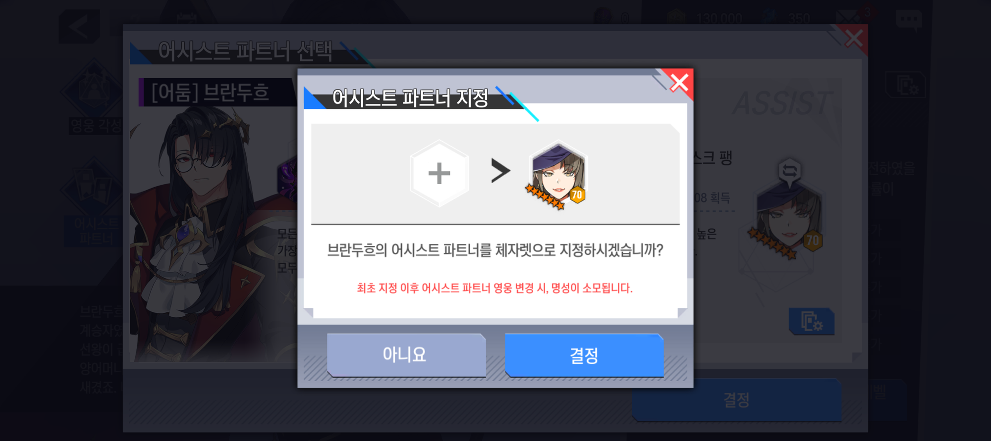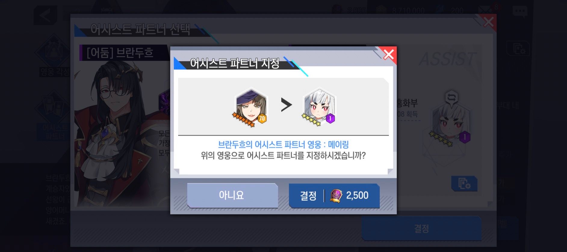 - [어시스트 파트너]는 최초 지정 이후 다른 영웅으로 어시스트 파트너 영웅을 변경 시 '명성'을 사용하여 변경할 수 있습니다.