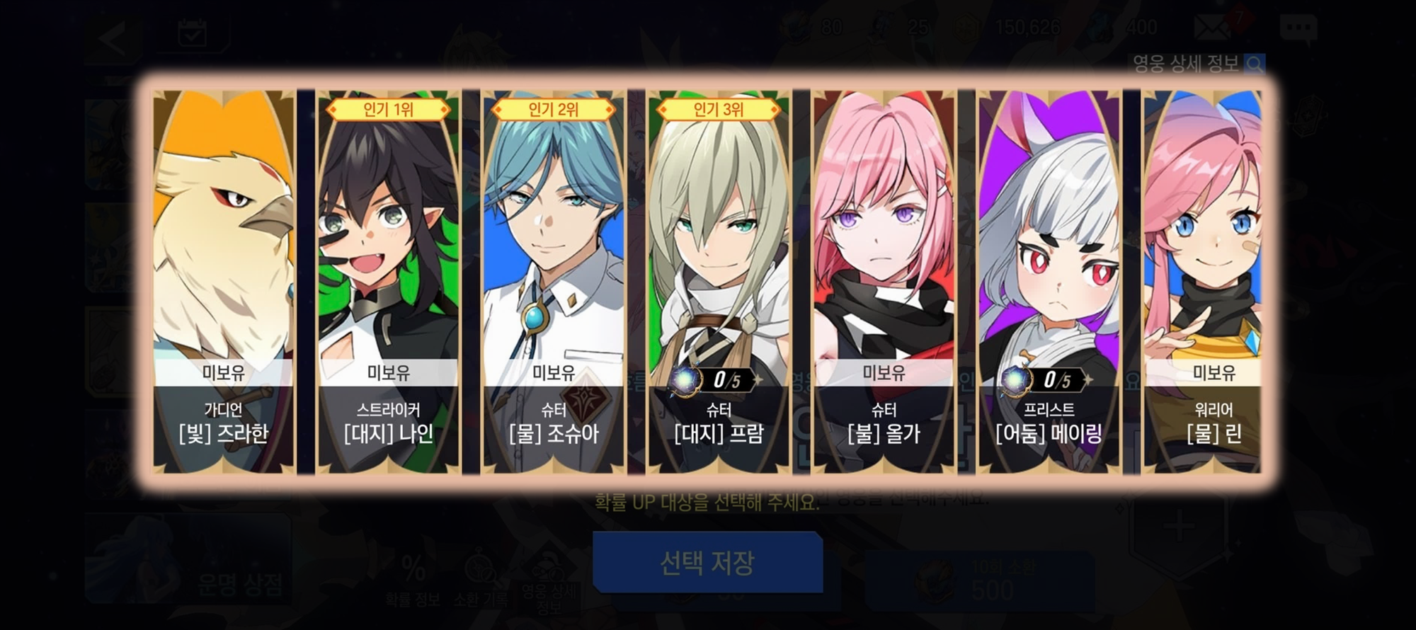 - 선택된 영웅은 소환될 확률이 증가합니다.
