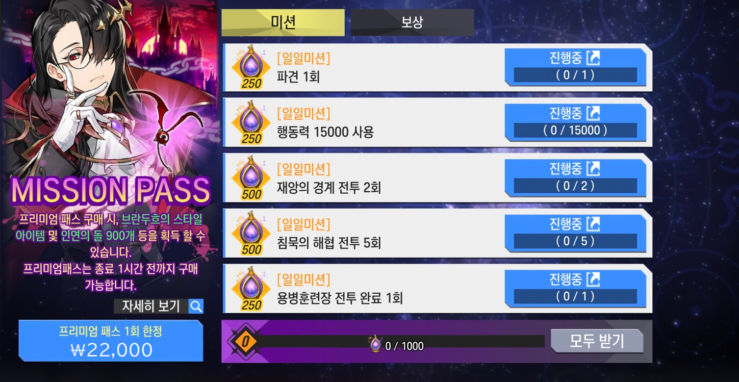 ※미션 패스 종료 1시간 전까지 구매가능합니다.
