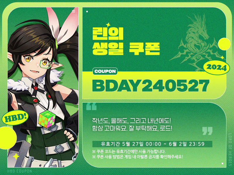 - 기간 : 5월 27일(월) 00:00 ~ 5월 28일(화) 23:59 (UTC+9)