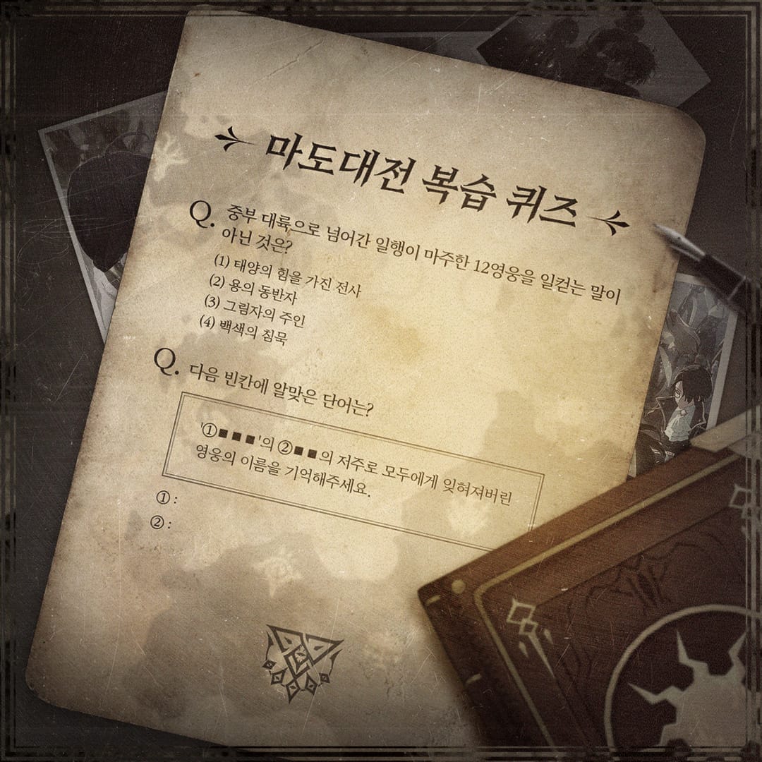 2. SNS에 필수 해시태그 #마도대전 #진리의서 #로오히 를 포함하여 퀴즈의 정답을 업로드해주세요.