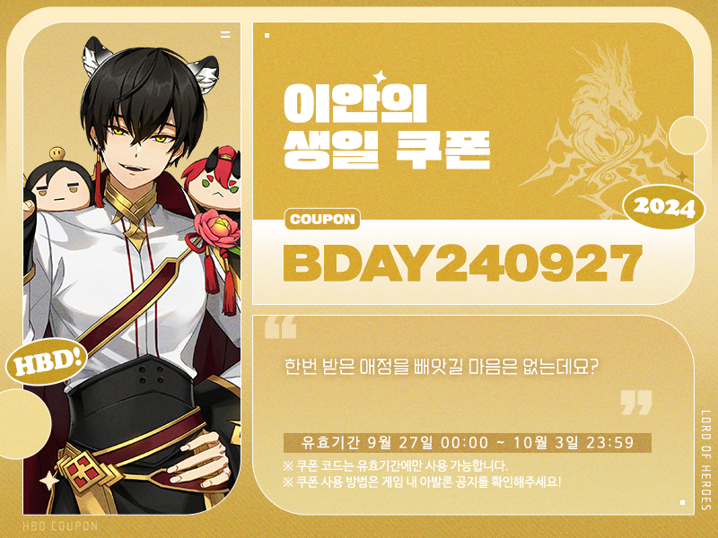 로드, 9월 27일은 이안의 생일입니다!