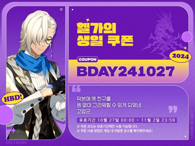 - 기간 : 10월 27일(일) 00:00 ~ 10월 28일(월) 23:59 (UTC+9)