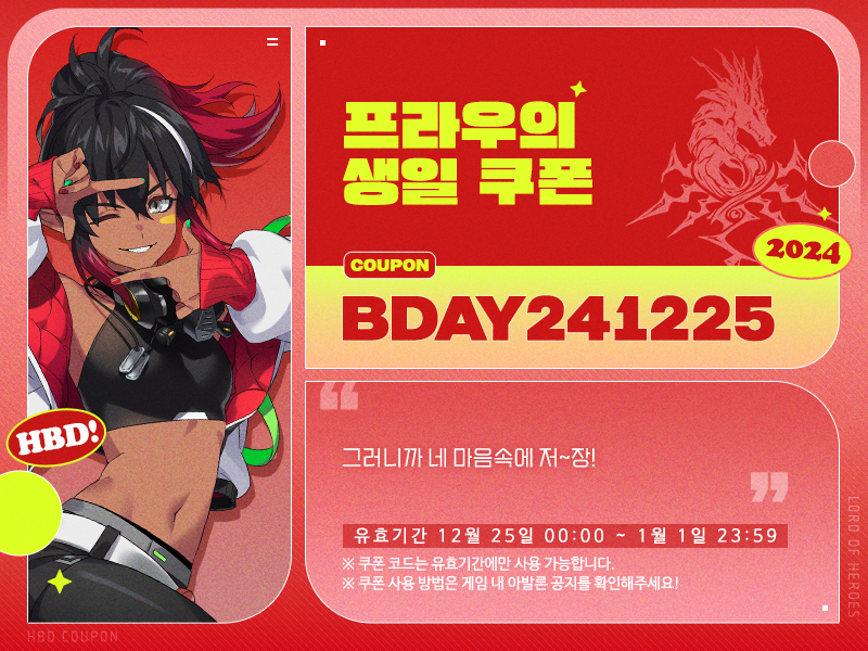- 기간 : 12월 25일(수) 00:00 ~ 12월 26일(목) 23:59 (UTC+9)