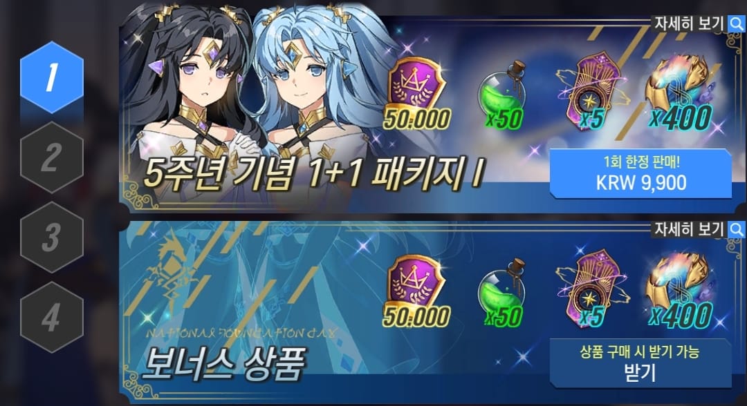 ※ 각 단계별로 상품 구매시, 동일 구성의 상품을 보너스로 1회 더 획득할 수 있습니다.