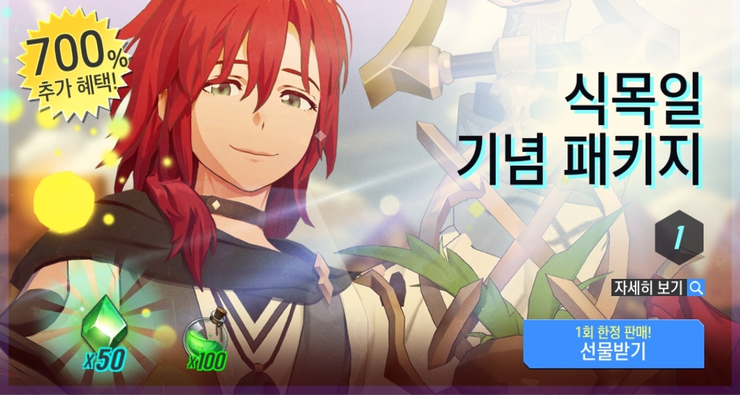 - 이벤트 기간 동안 식목일 기념 소환이 특별 개방됩니다. 해당 소환을 통해 일부 [대지] 속성 영웅과 해당 영웅의 아티팩트 소환을 진행할 수 있습니다.