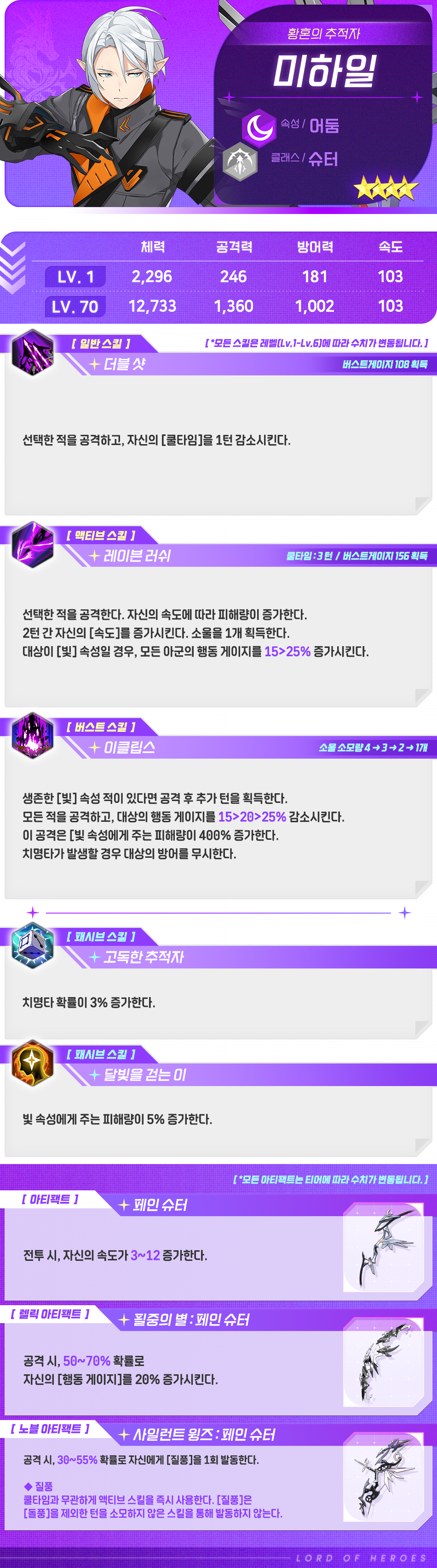 - 4/16(수) 정기 점검을 통해 [어둠] 미하일의 밸런스가 변경되어 갱신되었습니다.