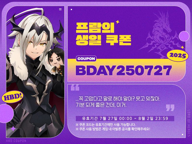 로드, 7월 27일은 프람의 생일입니다!