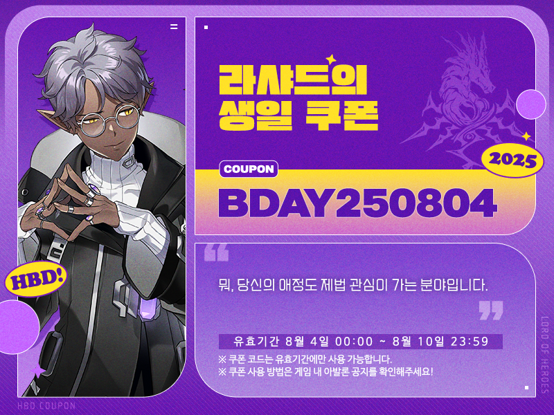 로드, 8월 4일은 라샤드의 생일입니다!