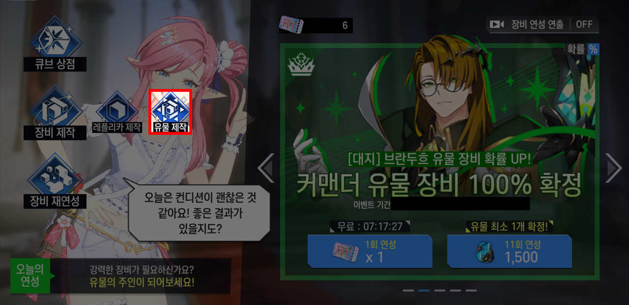 ※ 하드 6-12 클리어 시 유물 제작 콘텐츠가 해금됩니다.