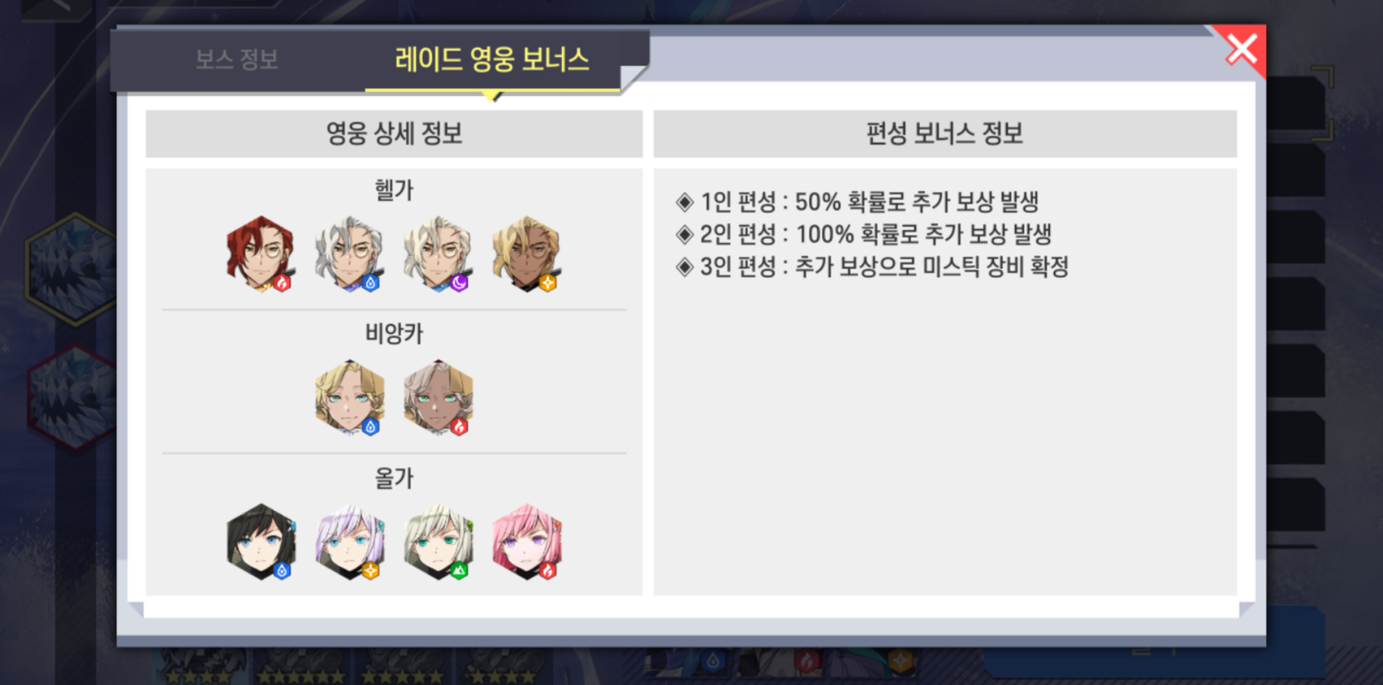 - 레이드 영웅 보너스는 기존과 동일하게 주기적으로 보너스 영웅이 변경됩니다.