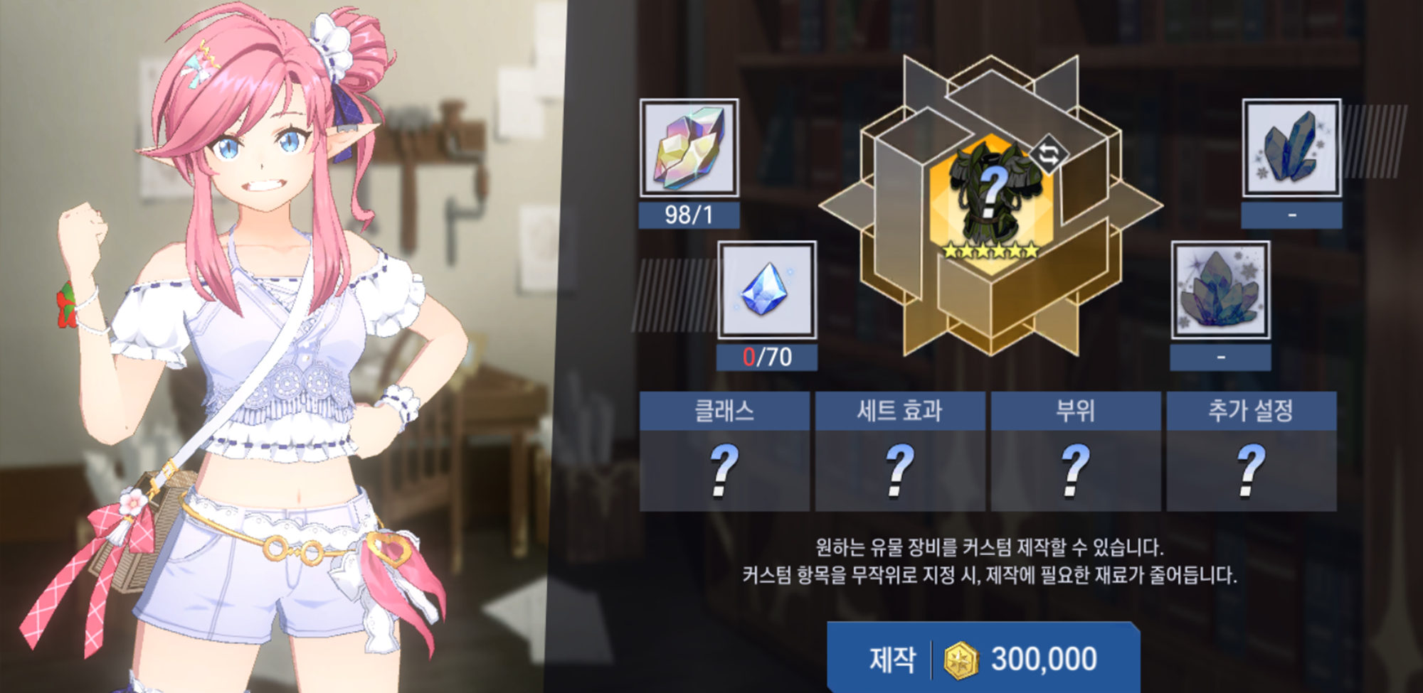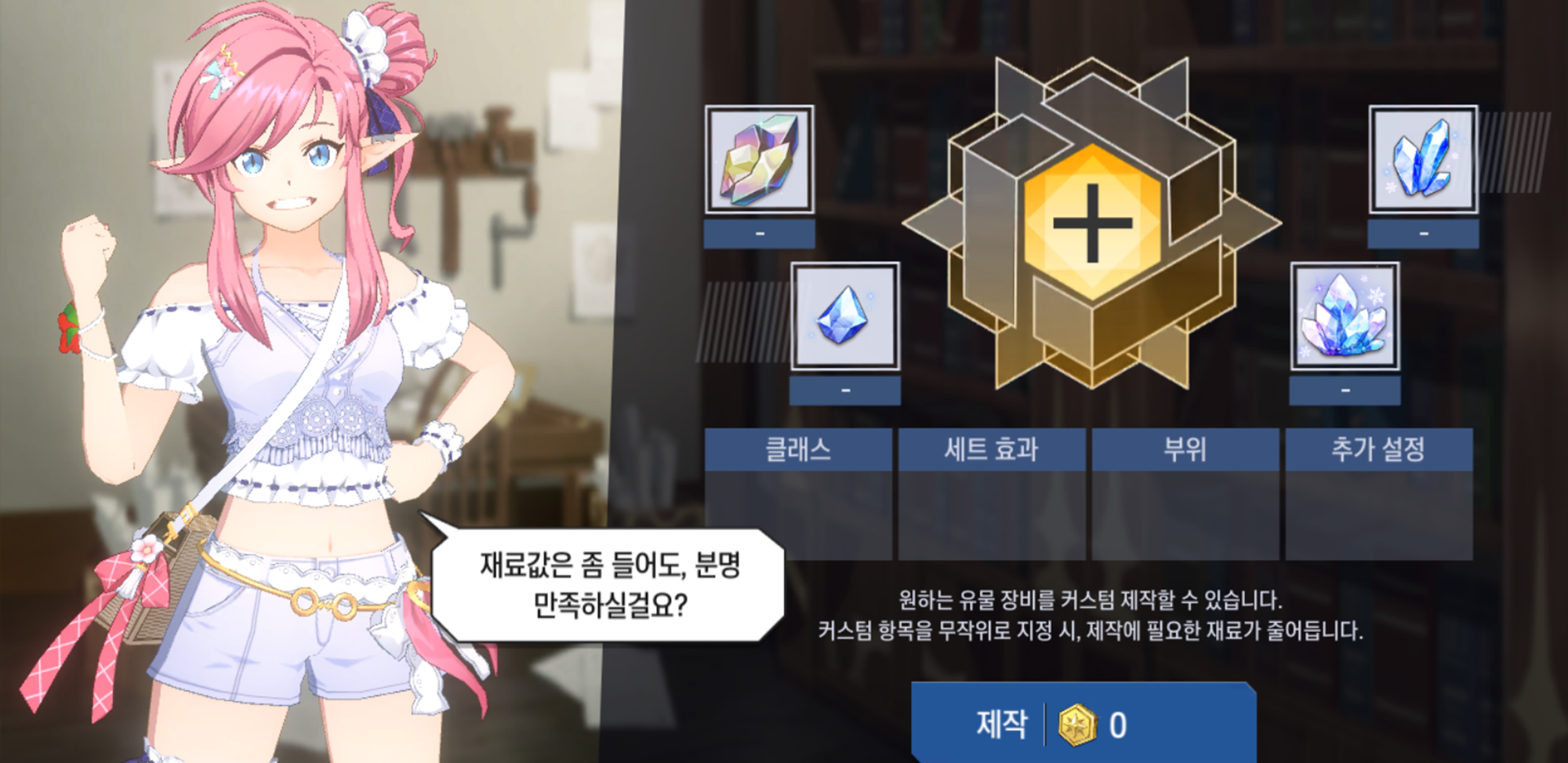 - 커스텀 옵션을 추가할 때마다 제작에 필요한 아이템 수량 및 비용이 증가합니다.
