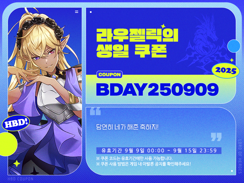 로드, 9월 9일은 라우젤릭의 생일입니다!