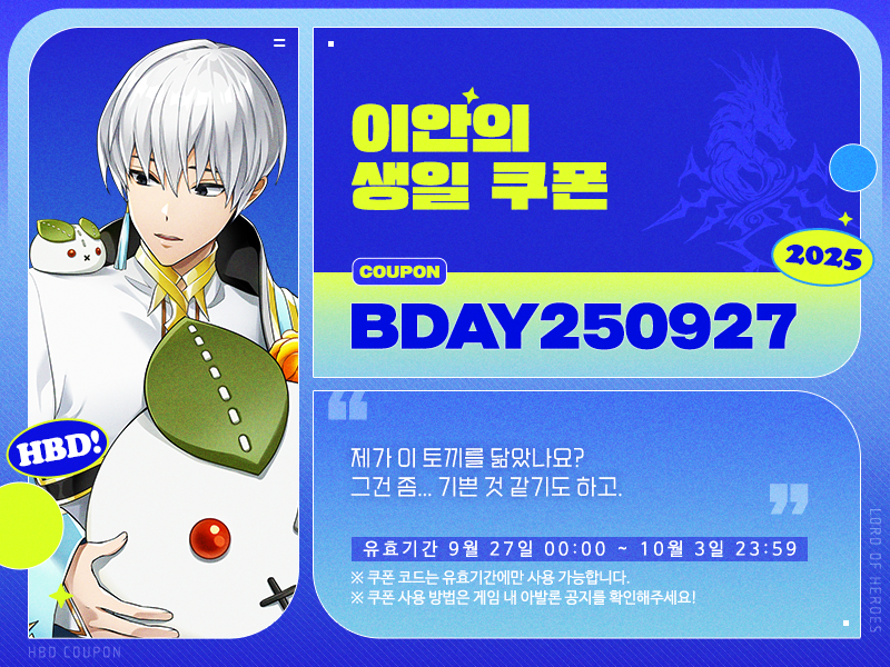 - 기간 : 9월 27일(토) 00:00 ~ 10월 3일(금) 23:59 (UTC+9)
