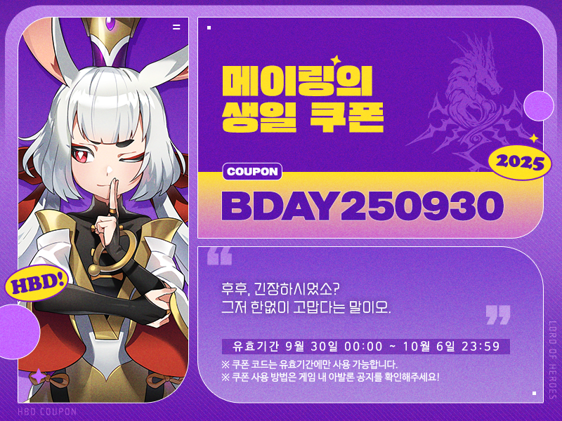 - 기간 : 9월 30일(화) 00:00 ~ 10월 1일(수) 23:59 (UTC+9)