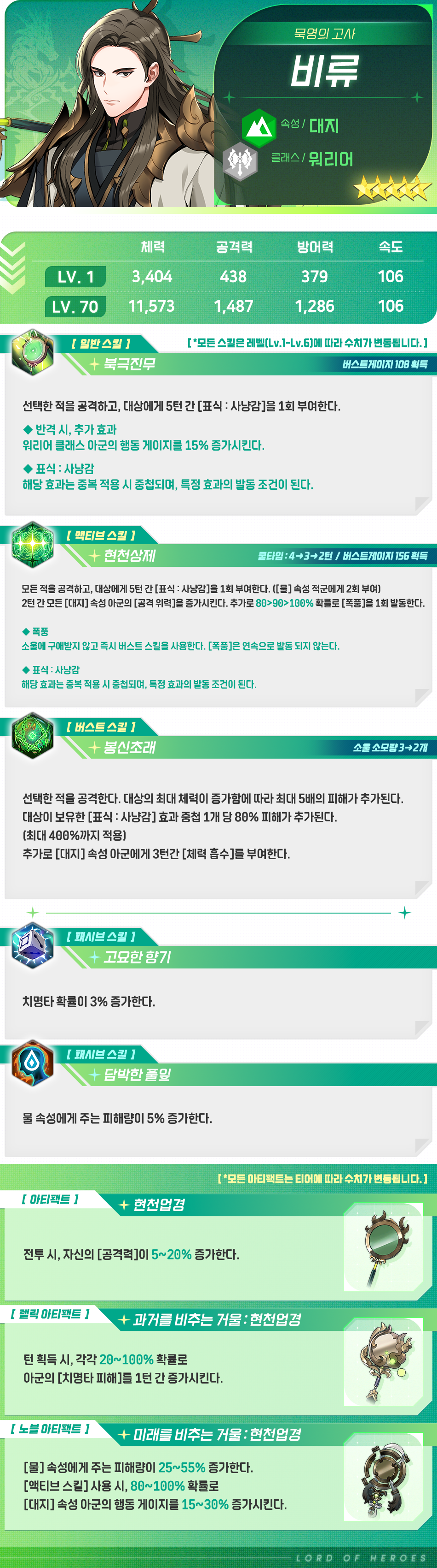 비류의 생을 짚어 보자면 언제 어느 때고 다른 전승자들의 이야기를 빼놓을 수 없을 겁니다. 하지만 이 비류는 다르지요. 인생에 가장 큰 흔적을 남긴 이는 청룡도, 주작도 그리고 백호도 아닌, 미르의 통치자 '천자'니까요. 그러니 이런 비류를 두고 누군가는 '천자의 보물'이라 칭하고 또 누군가는 '천자의 인형'이라 부르는 것도 놀라울 일은 아닐 겁니다. 어떻게 불리든 비류에게 호칭은 그다지 중요하지 않습니다. 중요한 것은 오직 하나, 천자와의 약속을 지키는 것이니까요.