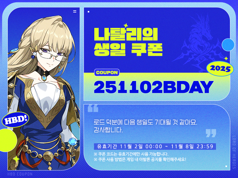 - 기간 : 11월 2일(일) 00:00 ~ 11월 8일(토) 23:59 (UTC+9)